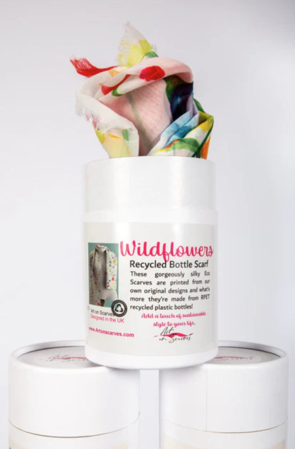 Art on Scarves was set up by North Wales based artist, Lucy Hay. Lucy's relationship with art finished before it began, when her art teacher told her to give up, as she had no talent!