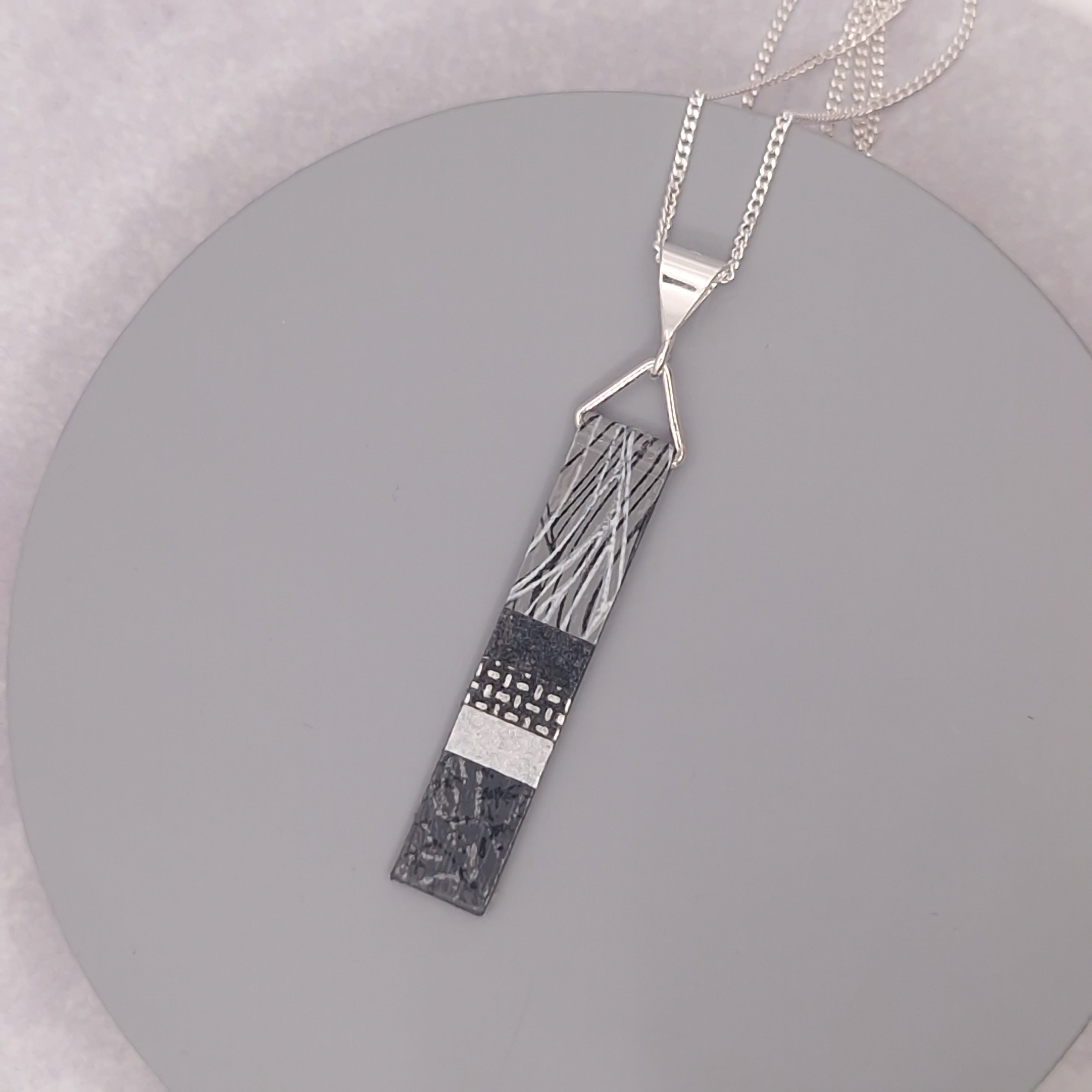 If you are looking to match your jewellery, this long slim pendant matches perfectly with the rest of the Long Slim Earrings collection.