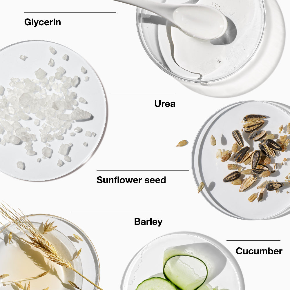 Key Ingredients Glycerin and Sodium Hyaluronate provide immediate hydration, while Sunflower Seed, Barley and Cucumber Extracts help strengthen skin so more moisture stays in.