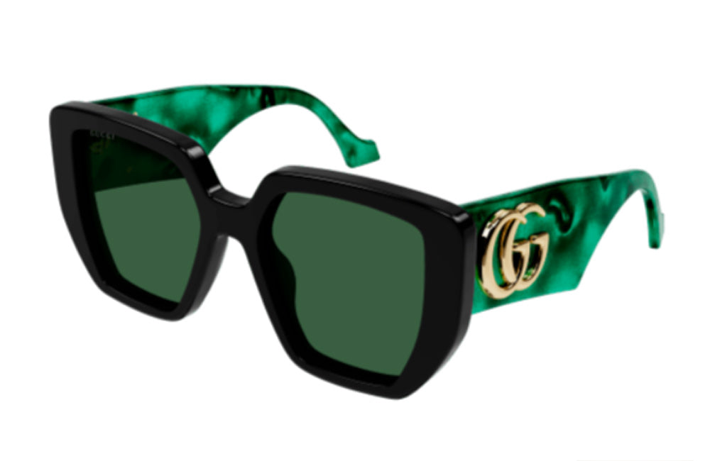 Pared-back simplicity characterizes the essential shapes, lines and colours of this concept, for a cool and on-trend mood. Inspired by a gender fluid look, translated in a street style effortless look. Oversize geometric shape in plastic characterized by bold volumes and strong personality. Gucci running logo embellishes the bold temple to enhance this oversized big black bold frame.