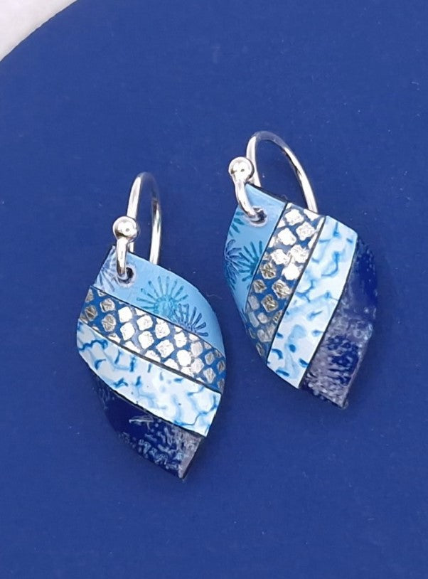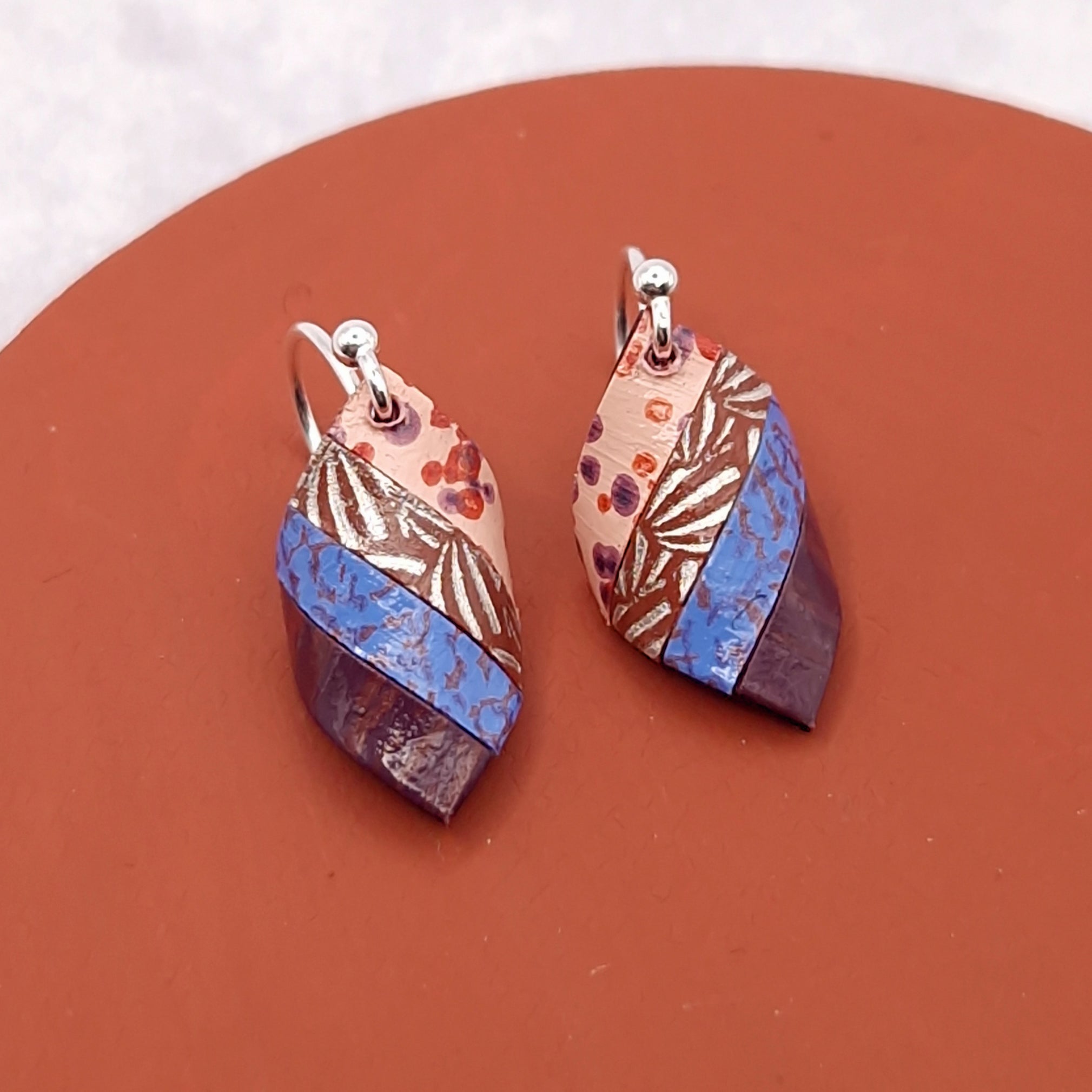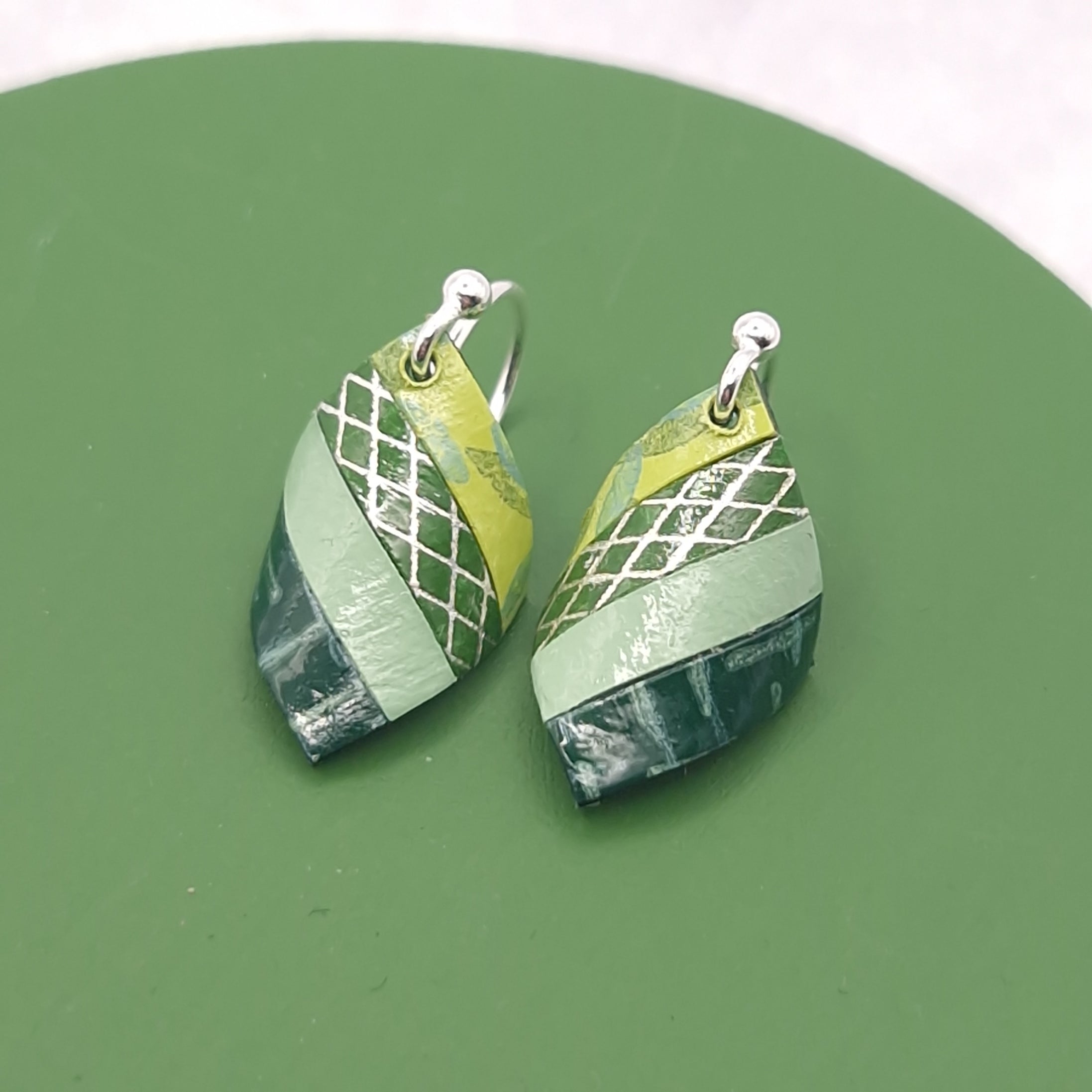 Small Handkerchief earrings made from hand-painted and gilded papers that Circle & Dash paint and print in their UK studio. Finished with enamel lacquer they are lightweight and durable with sterling silver hooks.
