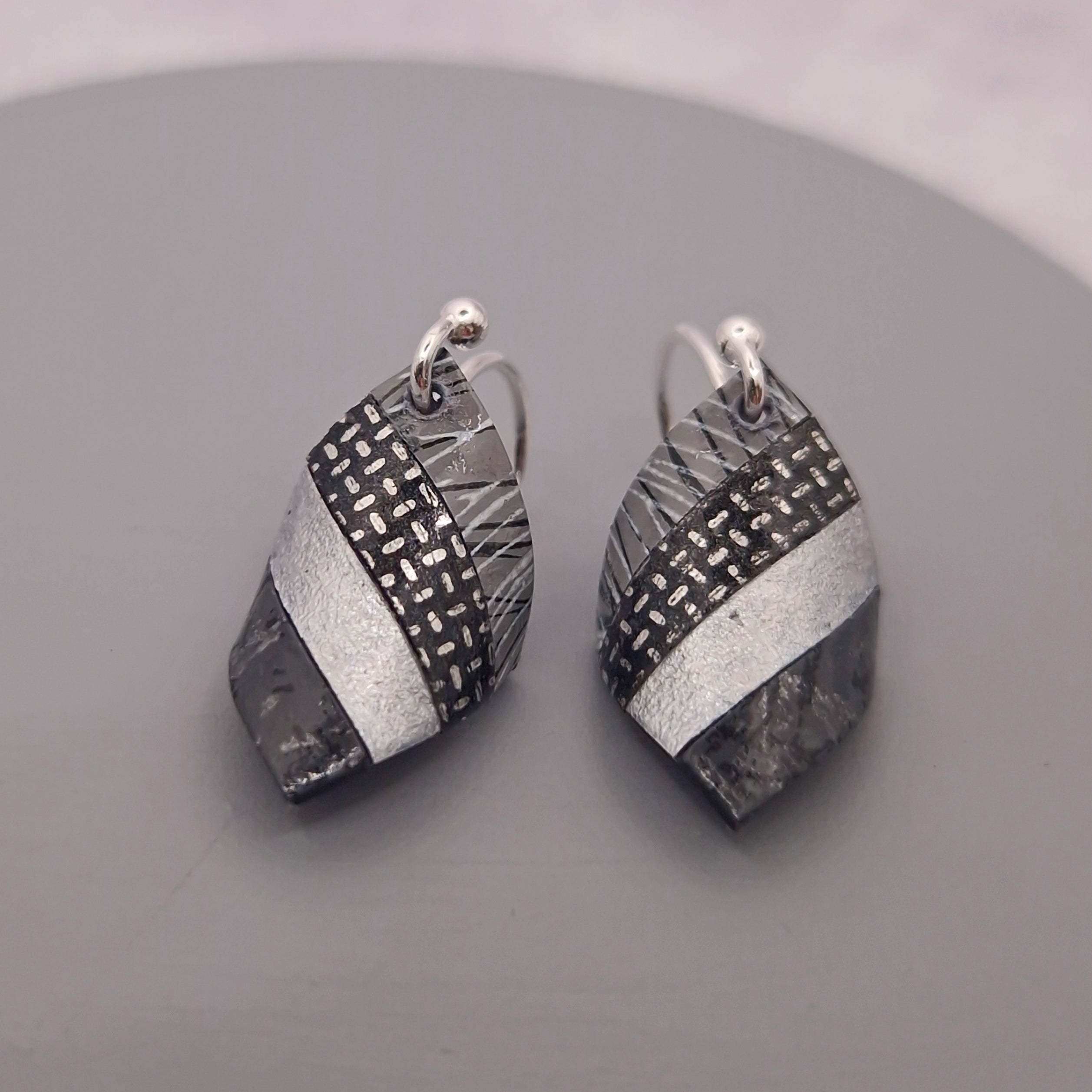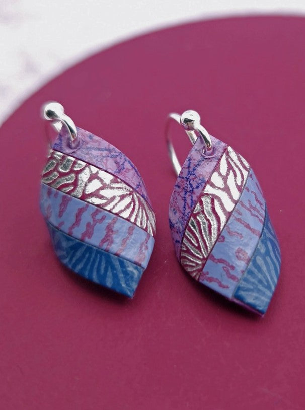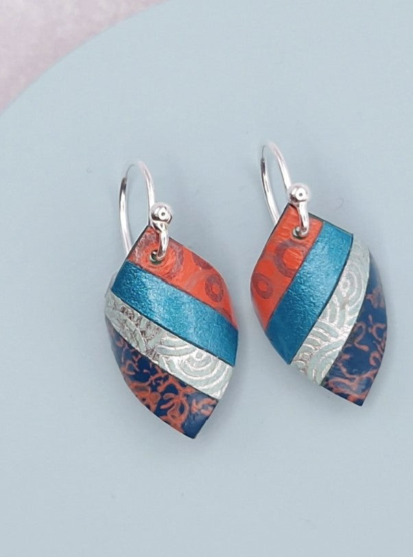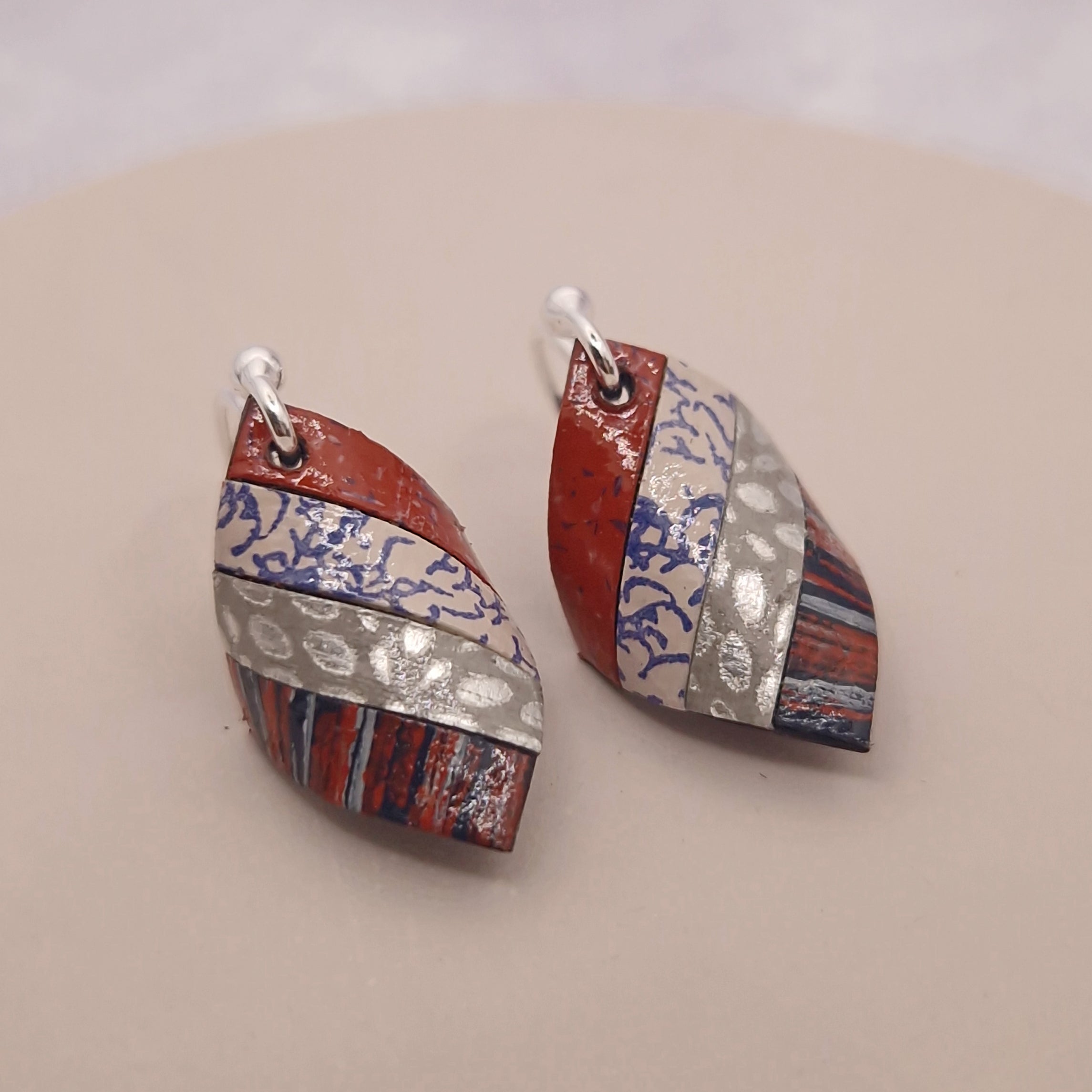 Small Handkerchief earrings made from hand-painted and gilded papers that Circle & Dash paint and print in their UK studio. Finished with enamel lacquer they are lightweight and durable with sterling silver hooks.