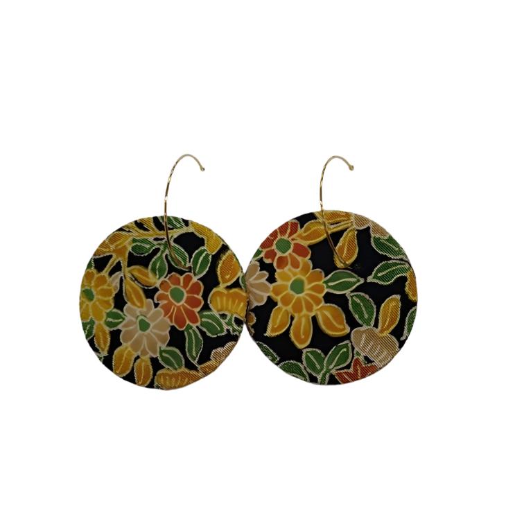 Made from 100% upcycled silk, these gorgeous Hoop and Moon Dangle earrings are a stunning statement look to compliment any outfit.