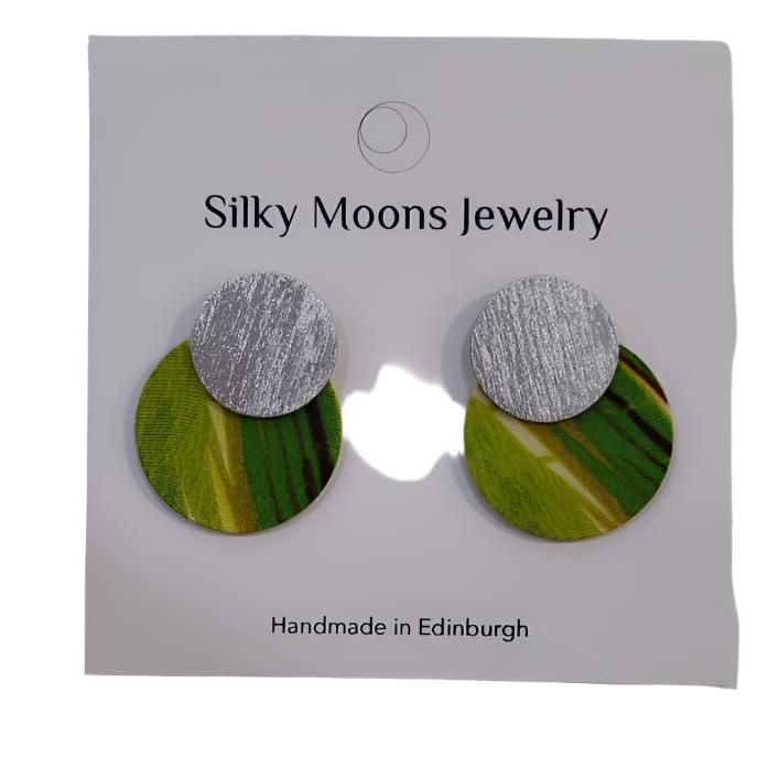 Made from 100% upcycled silk, these gorgeous Moon earrings are a stunning statement look to compliment any outfit.