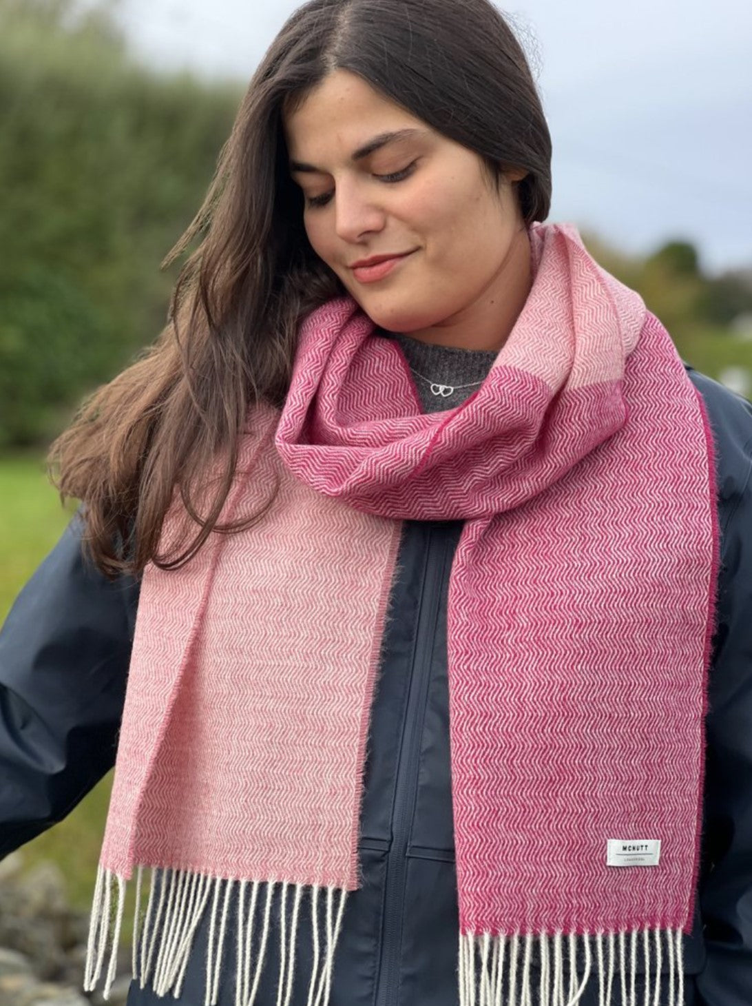 Add a touch of glamour with this beetroot and blossom supersoft scarf. This playful wave of pink will add a splash of glamour to your outfit.