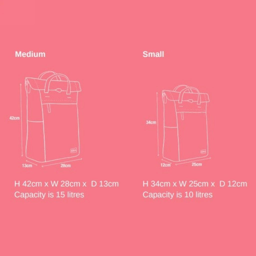 - Each small bag is 34cm x 25cm x 12cm. Capacity: 10 litres.
