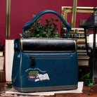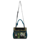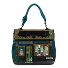 Carry it by the handle or wear it crossbody or over the shoulder with the adjustable strap. Finished in deep blue with matte black hardware and a distinct roof design, it features a stunning mix of printed and embossed artwork.