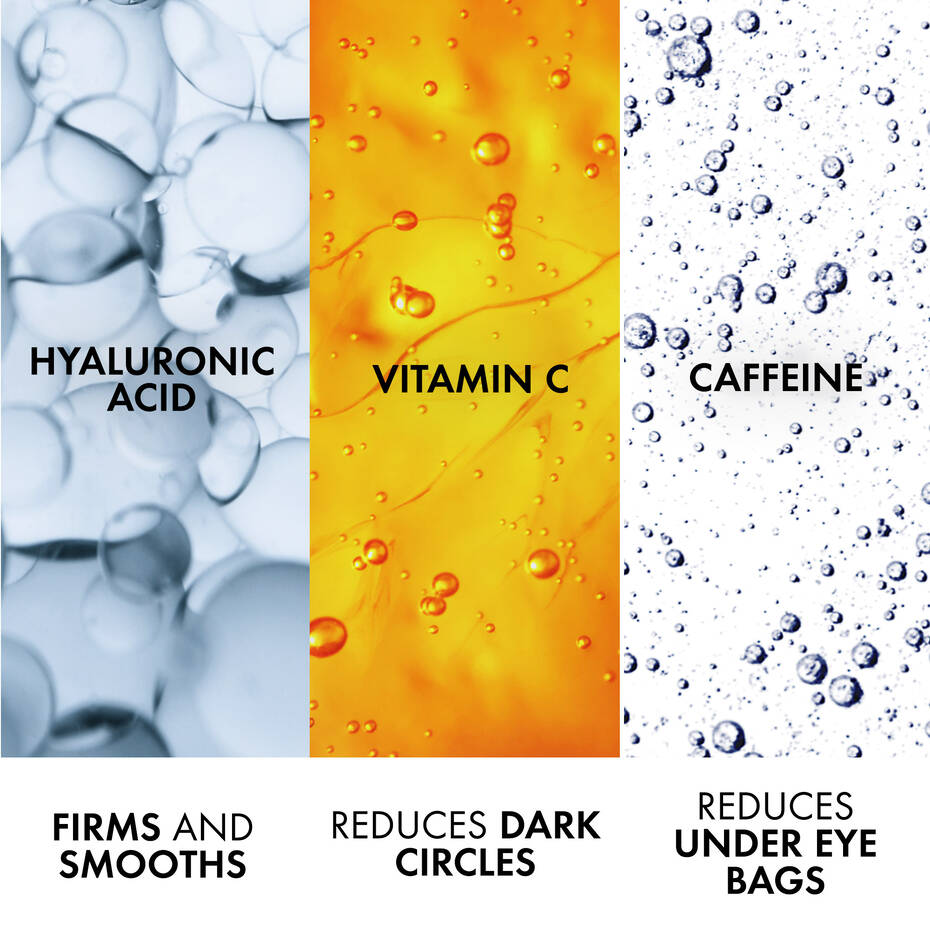 - Improves the appearance of wrinkles and crow’s feet, depuffs the look of under eye bags and minimizes dark circles.